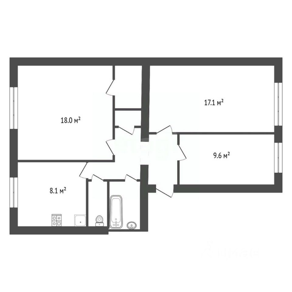 Продается трехкомнатная квартира в кирпичном доме 11 по улице Мира в Обнинске. Общая площадь 66 кв.м включает изолированные комнаты 18, 17.1 и 9.6 кв.м, что обеспечивает комфортное проживание для семьи с детьми или возможность обустройства кабинета. Планировка с разнесенными комнатами гарантирует приватность и тишину. Кухня площадью 8.1 кв.м функционально организована для приготовления пищи и семейных обедов. В квартире присутствуют две гардеробные для рационального хранения вещей и раздельный санузел, отделанный практичной плиткой.