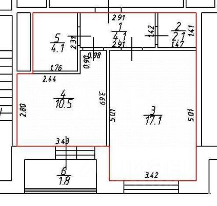 Комната: 17,1 кв.м