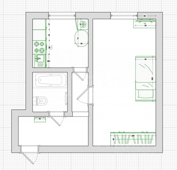 Однокомнатная квартира 31.5 кв. м