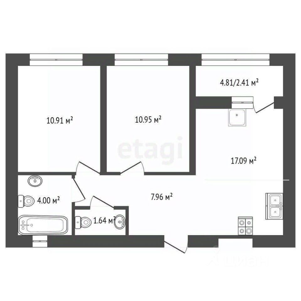 2 Спальни по 10.9 кв.м.