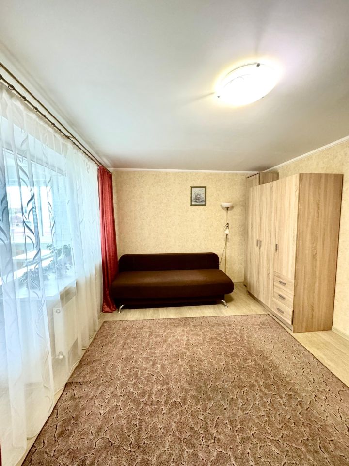 Жилая комната (16,4 кв.м.) правильной прямоугольной формы позволяет удобно спланировать пространство для жихни.