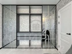 вместительный шкаф-купе (оборудован полками, выдвижными ящиками и штангами)