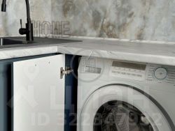 кухонный гарнитур со встраиваемой бытовой техникой (варочная панель Haier, духовой шкаф, холодильник и стиральная машинка фирмы Candy, пылесос)