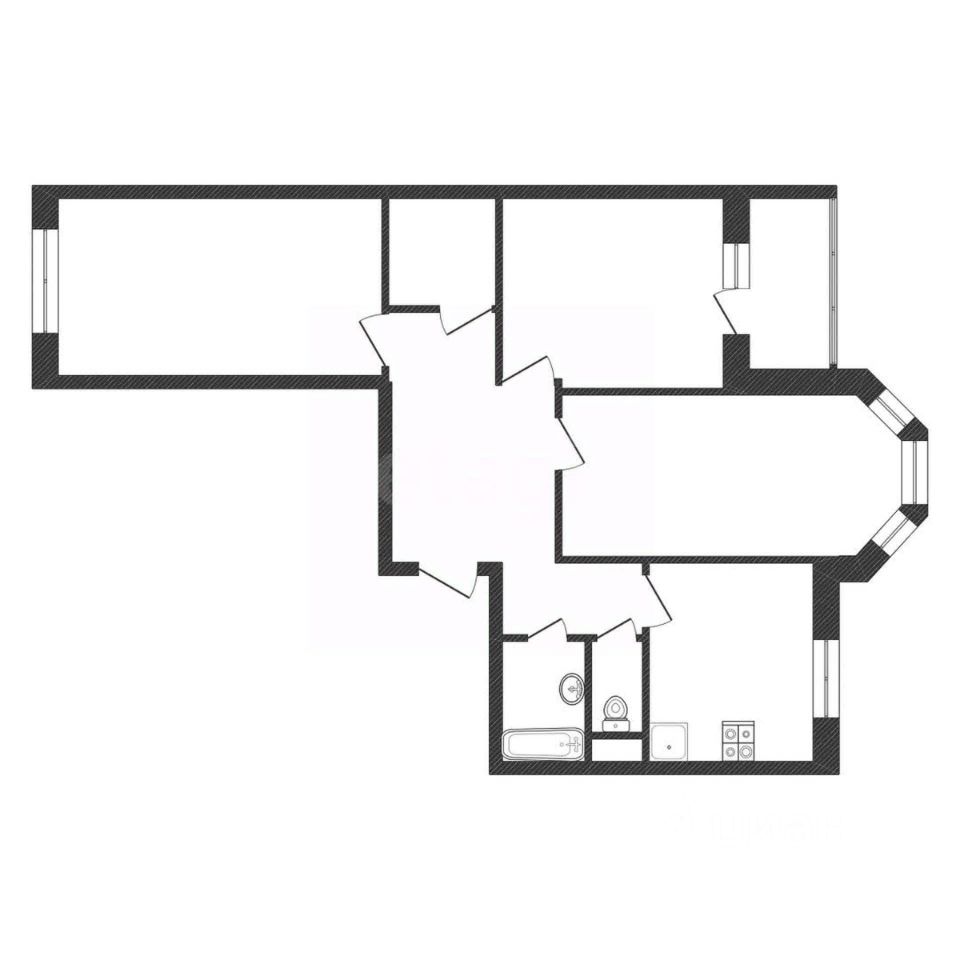 Просторная куxня - гостиная с эркерным окном, вместительная прихожая, две изолированные комнаты, гардеробная, просторный санузел.