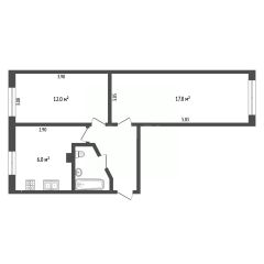 В продаже 2-комнатная квартира. Дом 1959 года постройки, кирпич.