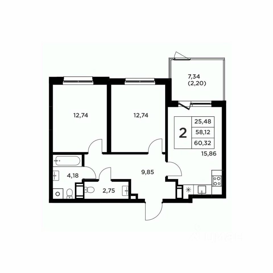 Продается 2-комн. квартира, 65,46 м²