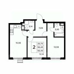 Первый вариант: улучшенная черновая отделка. Установлены радиаторы, приборы учета, оштукатурены поверхности стен. На полу цементно-песчаная стяжка, а также дополнительная шумо- и гидроизоляция.