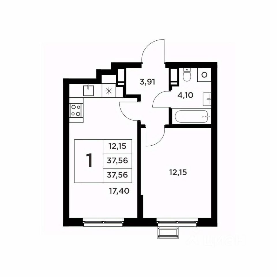 Общая площадь37,56 м²
