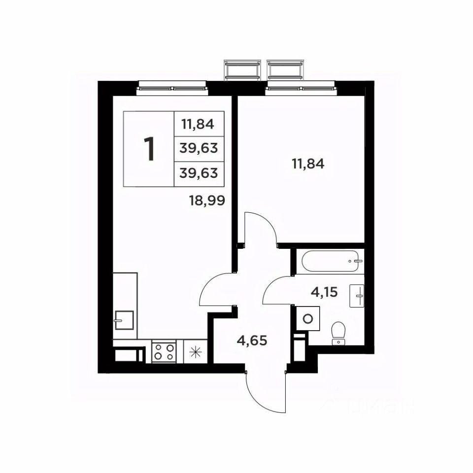 Общая площадь39,63 м²