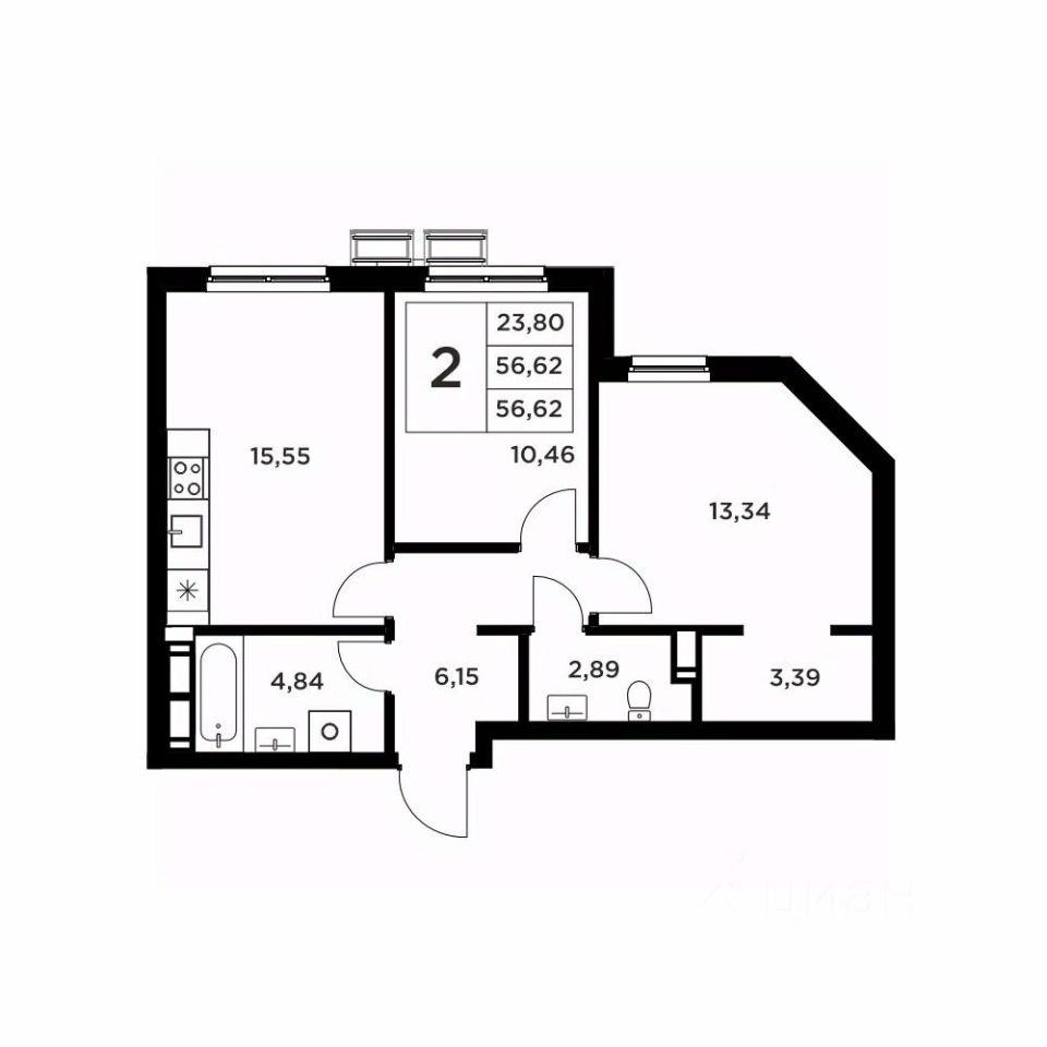 Продается 2-комн. квартира, 56,62 м²