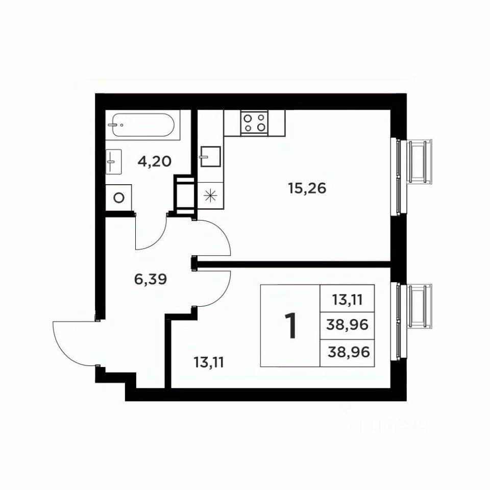 Общая площадь38,96 м²
