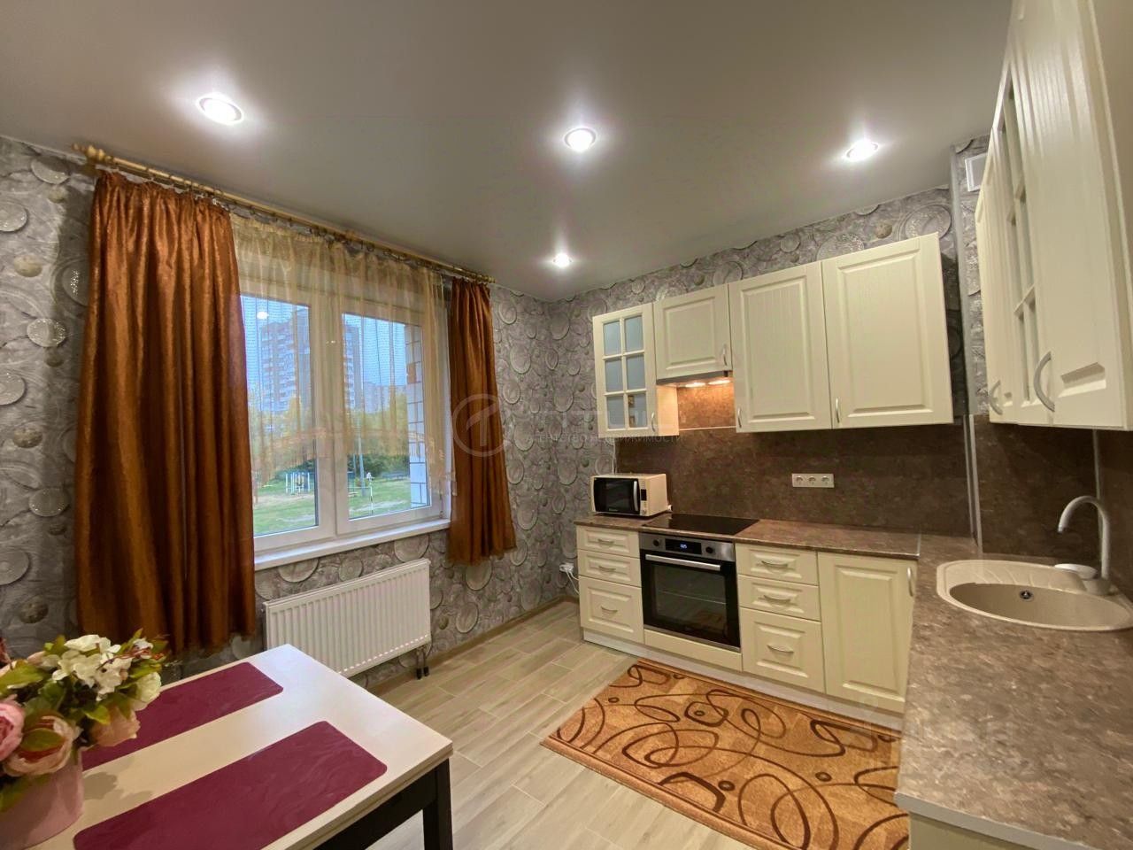 Квартира с отличным современным ремонтом, пластиковые окна, импортная сантехника, унитаз с инсталляцией, стильные межкомнатные двери, все материалы очень высокого качества: ламинат высокой прочности, напольная и настенная плитка KERAMA MARAZZI в ванной комнате, туалете и кухне, обои в пастельных тонах, точечные потолочные светильники с приятным освещением придают интерьеру изысканности и индивидуальности, всё в идеальном состоянии, ремонт делали под себя, установлены приборы учёта.