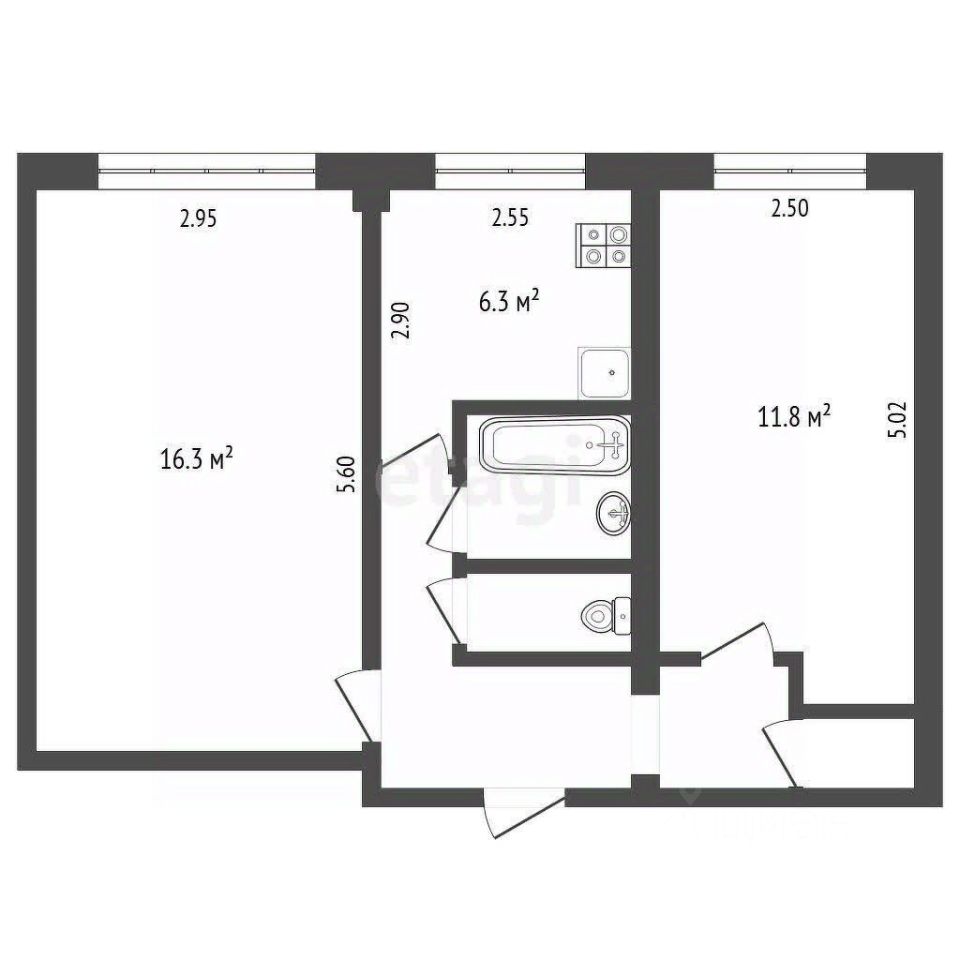 Туалкт 1.6 кв.м