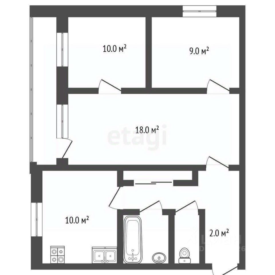 Общая площадь: 54 м²