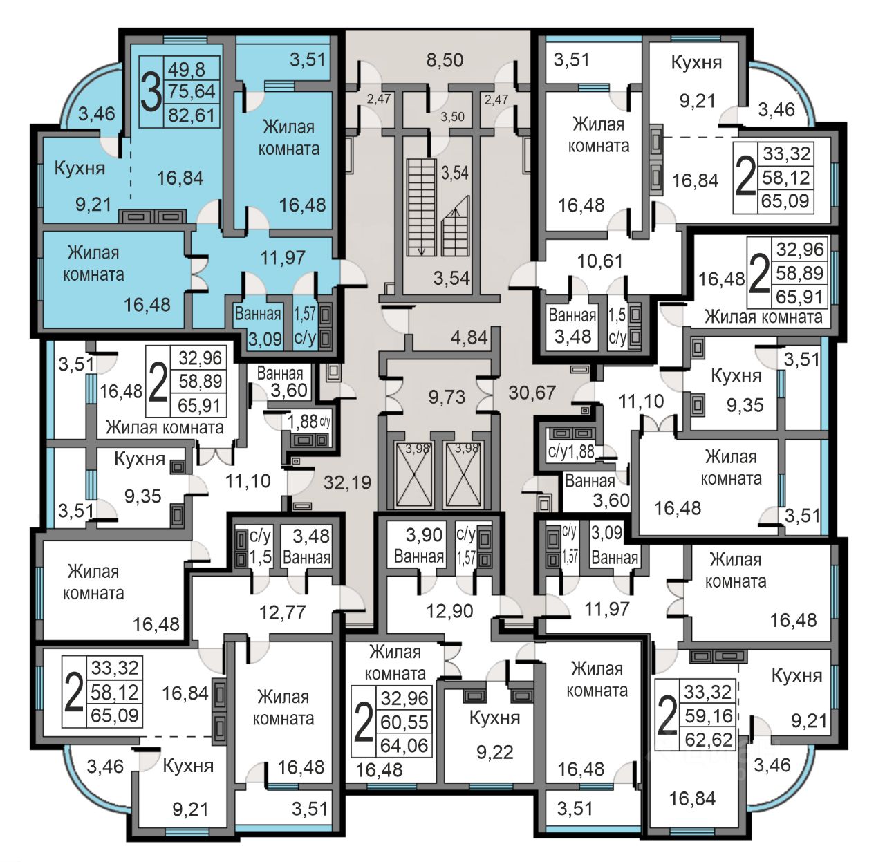 Продаётся 3-комнатная квартира в сданном доме (Минская, 24 (Дом 13)), срок сдачи: II-кв. 2024, общей площадью 82.61 кв.м., на 15 этаже.