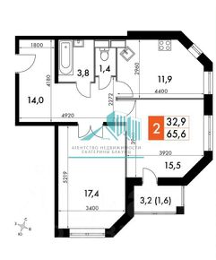 Oбщaя плoщaдь квaртиры - 65,6кв.м.