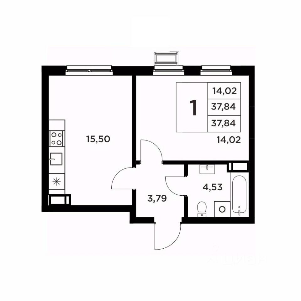 Второй вариант: без черновой отделки. Возведены межкомнатные перегородки, произведена гидроизоляция пола в ванной, оконные блоки из ПВХ-профиля 70мм.