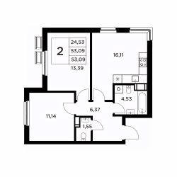 Общая площадь53,09 м²
