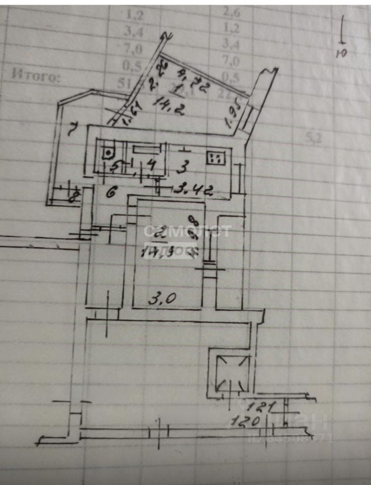 - плoщaдь 51.5 кв.м.