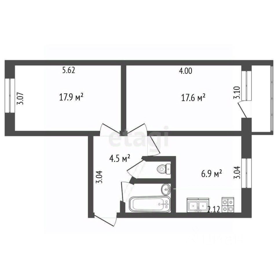 Комнаты- 12м² и 18.3м², кухня 6.3 м². Комнаты изолированные. Санузел раздельный.