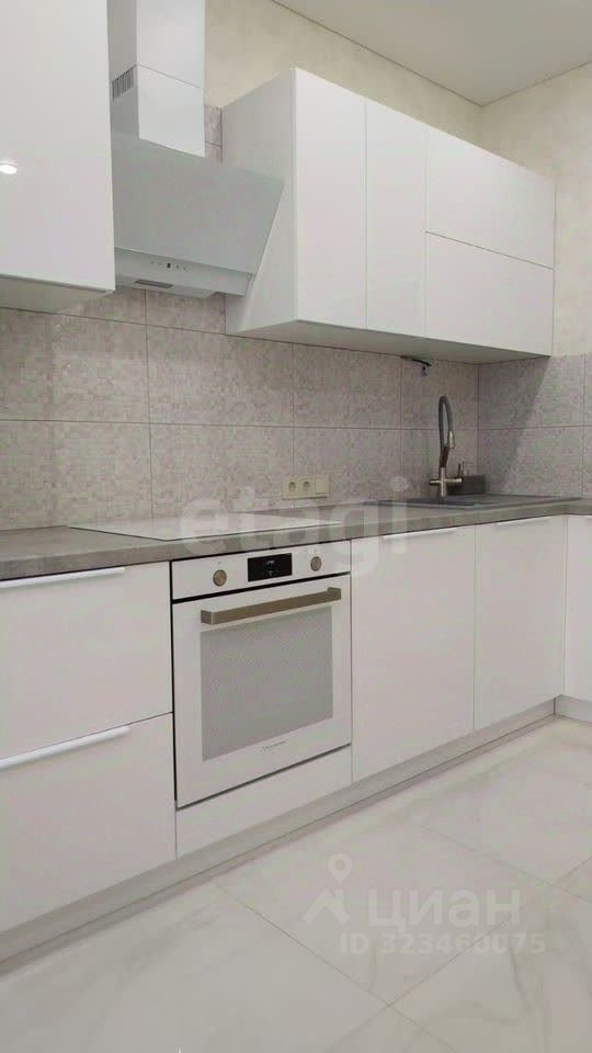 Кухня-гостиная с дорогим гарнитуром и всей встроенной техникой (ПММ, духовка, варочная панель).