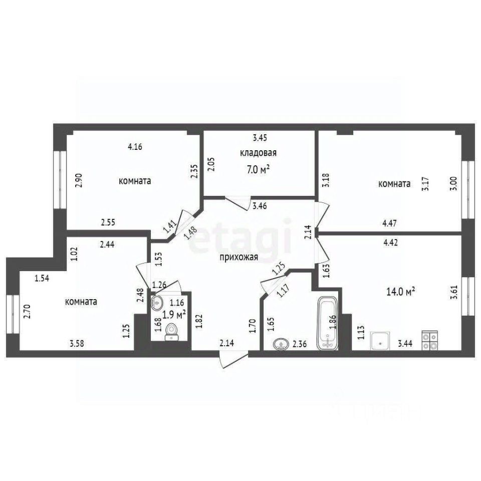 Изолированные комнаты (3 спальни).