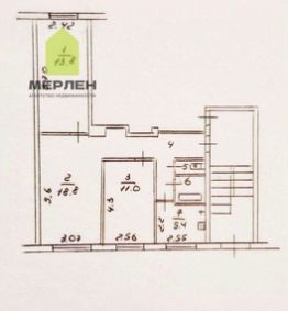 Общая площадь: 58.9 кв.м, жилая: 43.6 кв.м., кухня: 6 кв.м.