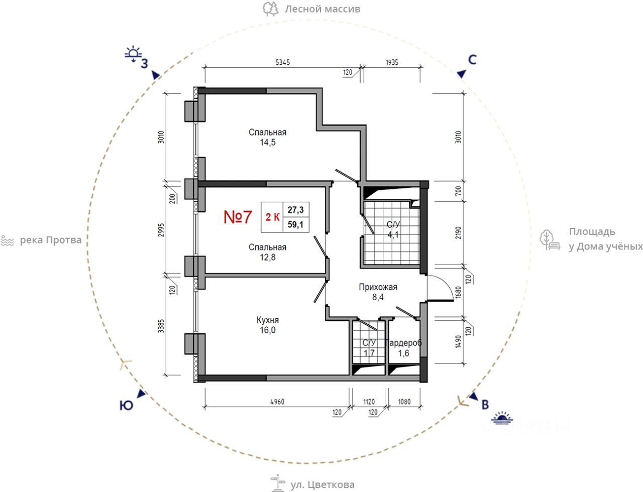 Общая площадь59,1 м²