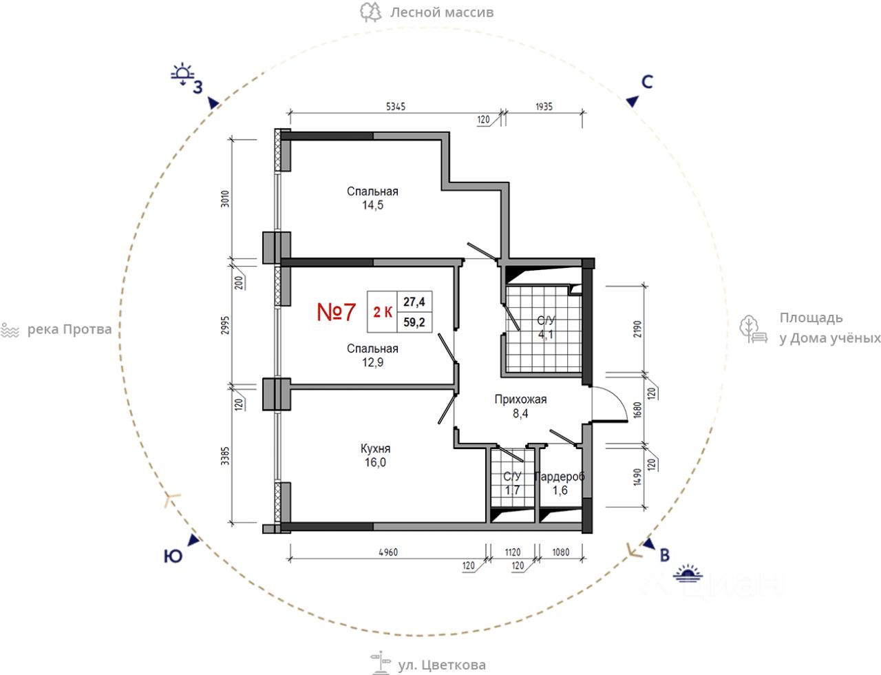 Общая площадь59,2 м²