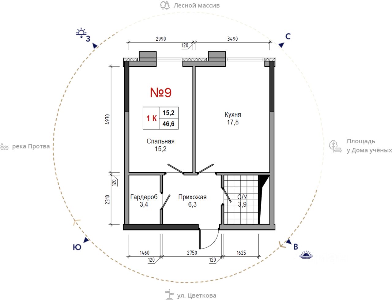 Общая площадь46,6 м²