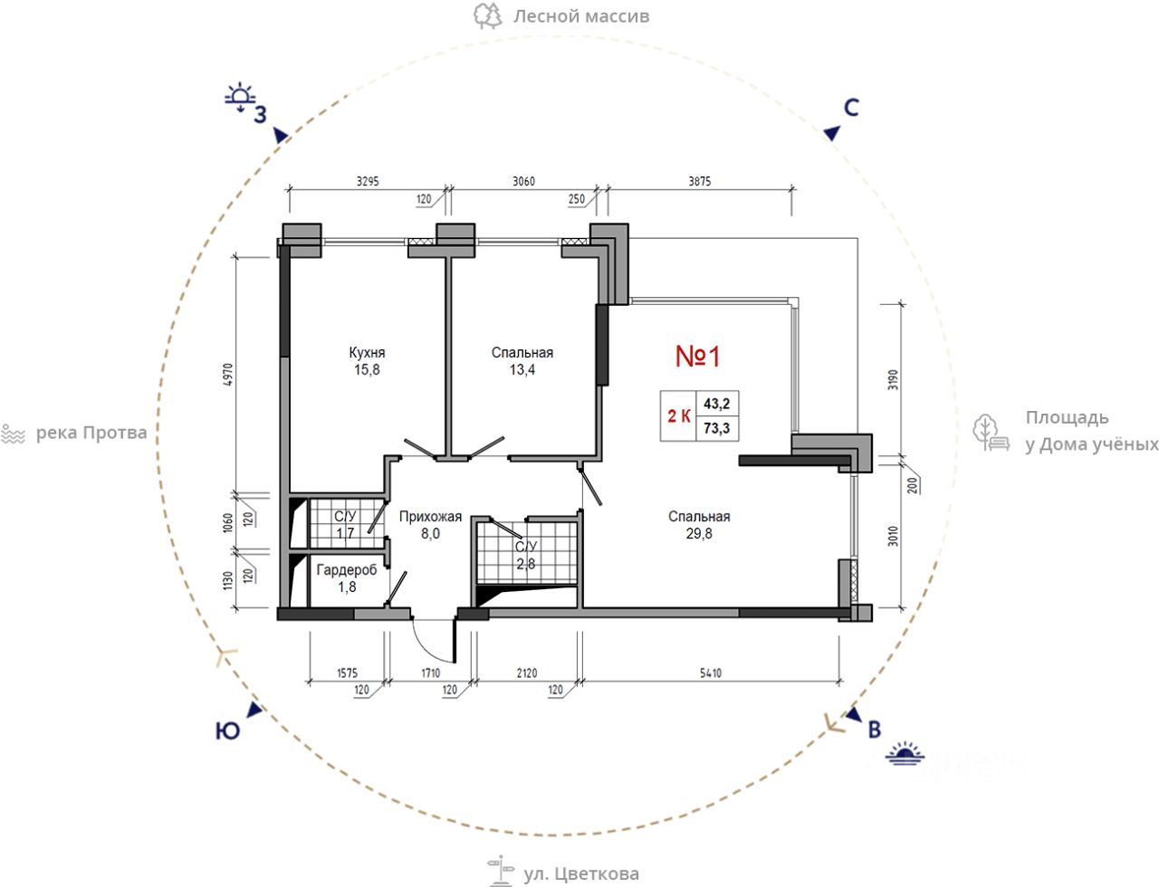 Общая площадь73,3 м²