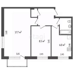 комнаты 17.7 кв.м, 8.5 кв.м