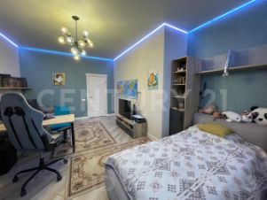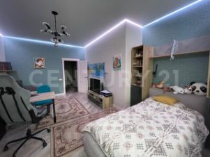 Детская: 22 кв. м, очень просторная, в ней спокойно можно организовать комфортное пространство для Ваших двоих, а то и троих детишек, на полу качественный ламинат. Парящий натяжной потолок с красивой многоцветной подвеской делает комнату любимым местом для Ваших деток. Из детской комнаты выход на большую утеплённую лоджию около 5 кв. м, теплые водяные полы, плитка.