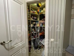 В большой прихожей теплые водяные полы, керамогранит, огромный встроенный зеркальный шкаф и очень функциональная кладовая.