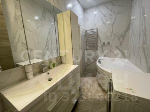 Второй санузел общего пользования 6 кв. м, в нём установлена большая угловая акриловая ванна, организована стирка.