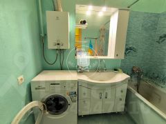 Санузел раздельный. В ванной комнате установлена большая ванная, вместительный шкаф с раковиной, зеркалом, подсветкой, стиральная машина. На полу кафель и система "теплый пол", люстра с цветной подсветкой. Вся сантехника новая! В туалете новый унитаз, установлены полки для хранения моющих средств и ветоши, которые задекорированы шторой.