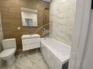 Санузел совмещен, выложен широкоформатной плиткой, сделана инсталляция.