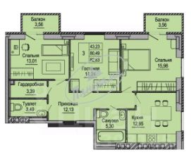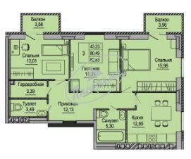 2 лоджии, 2 балкона