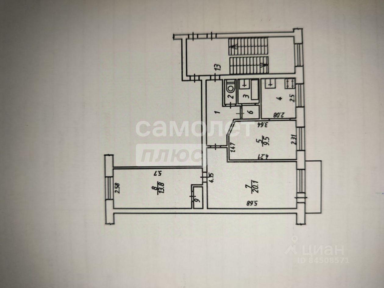Три комнаты: 20.1м2 (с выходом на застекленный балкон), 13.8(с большим встроенным шкафом для хранения) и кухня гостиная 14.7м2(перепланировка узаконена).