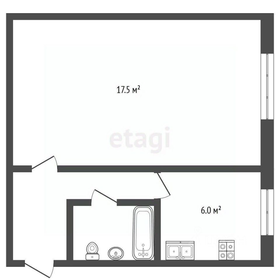 Общая площадь 30,7 кв м