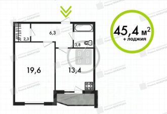 Общая площадь квартиры - 45,4 кв.м + лоджия. Планировка отличается выгодными преимуществами: