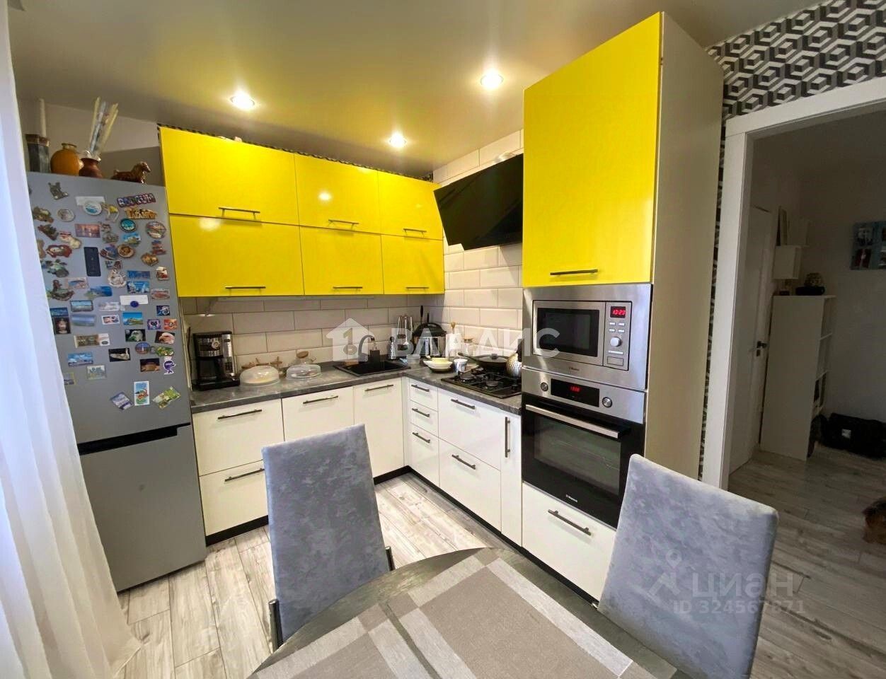 - Просторная кухня 9,8 метра , при продаже остается кухонный гарнитур и встроенная техника(варочная панель,духовой шкаф, вытяжка), холодильник.