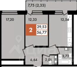 Общая площадь: 56 м², жилая площадь: 29 м² просторная кухня 12 м². Большая лоджия 8 кв.м
