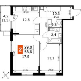 Продаётся 2-к квартира номер 12 общей площадью 58.6 кв.м. на 2-м этаже 22 этажного здания. Без отделки. Цена с учётом скидки.