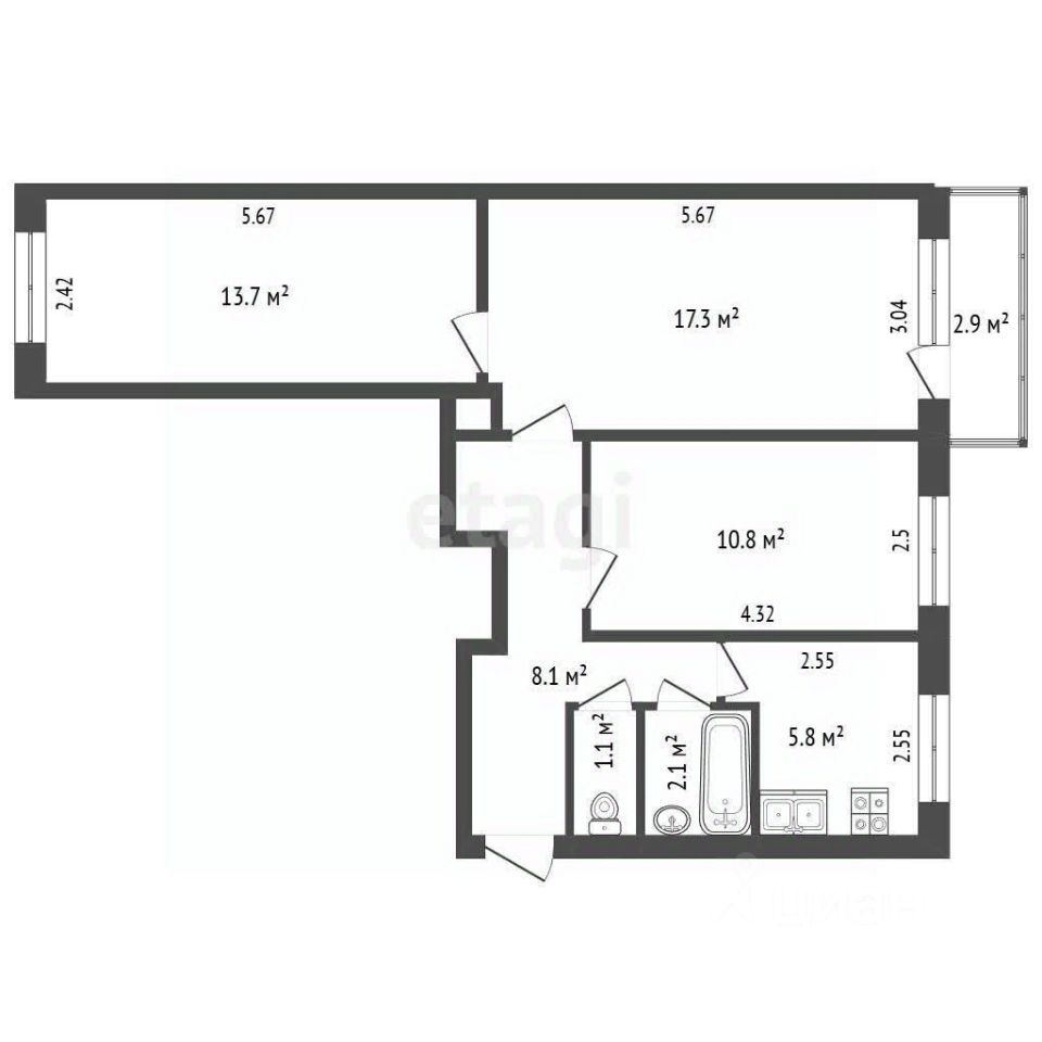 5,8 м²