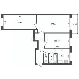 58,9 м²