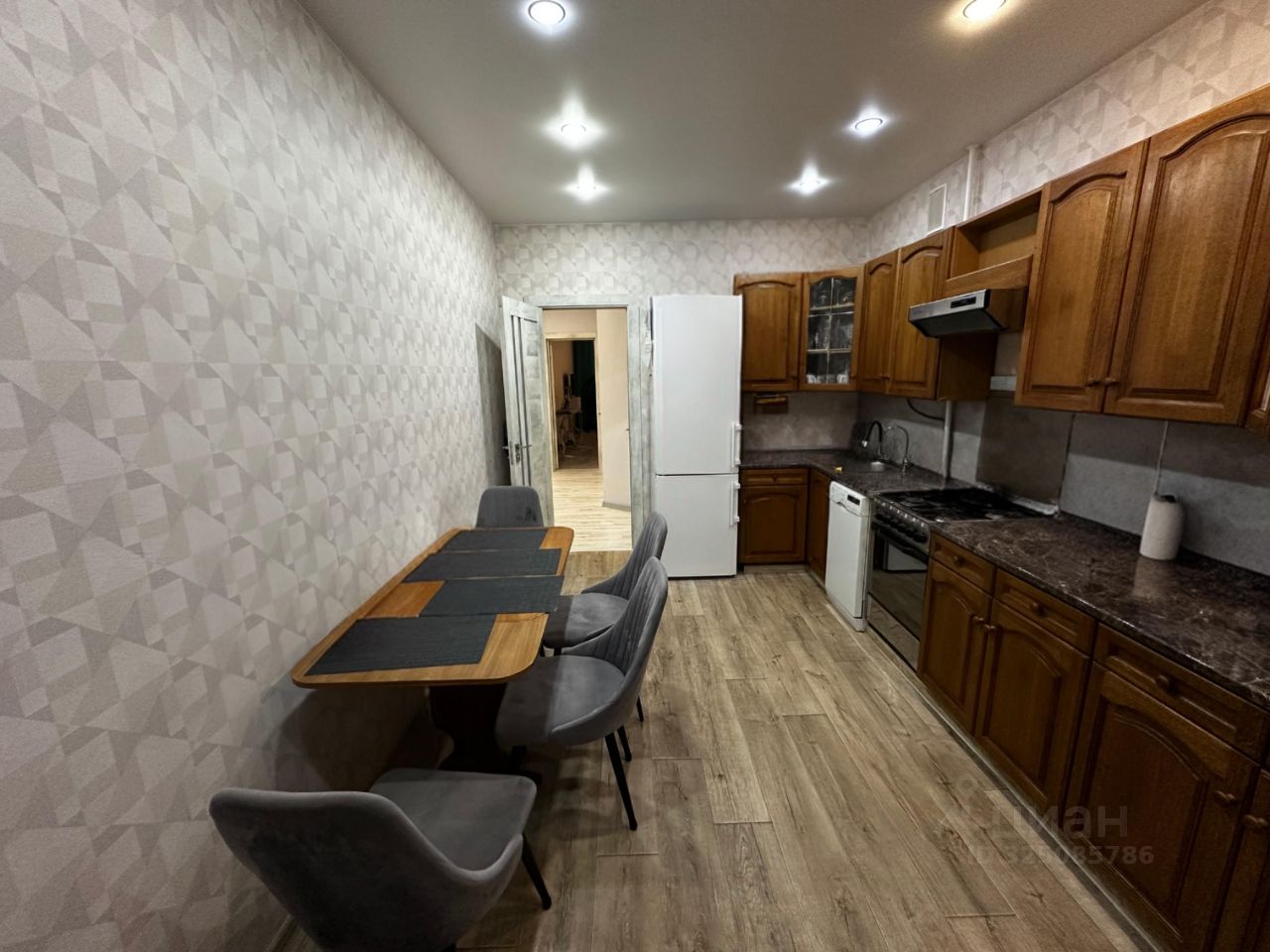 Общая площадь квартиры: 105 кв.м, просторная кухня 13,5 кв.м, с выходом на балкон, жилая 61 кв.м, большая прихожая, сделана закладная под шкаф. Санузел раздельный, в плитке.
