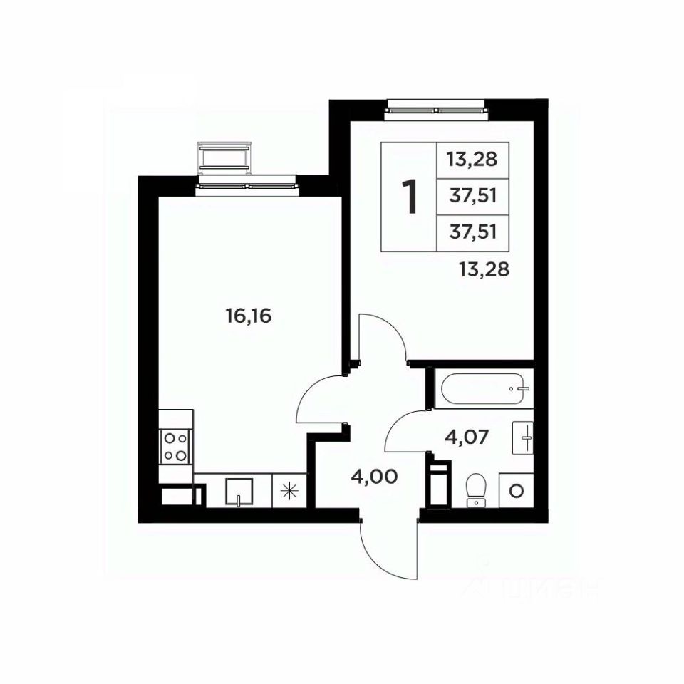 Второй вариант: без черновой отделки. Возведены межкомнатные перегородки, произведена гидроизоляция пола в ванной, оконные блоки из ПВХ-профиля 70мм.