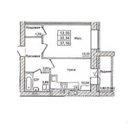 Жилая комната: 13.35 кв.м