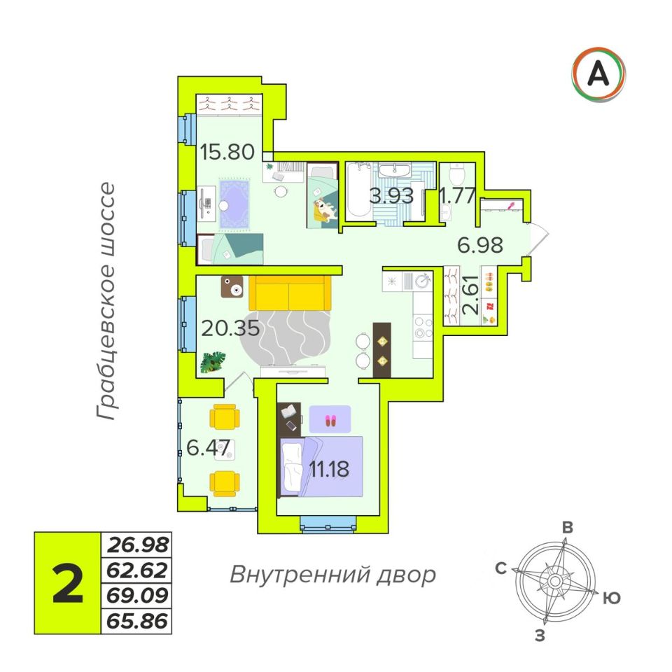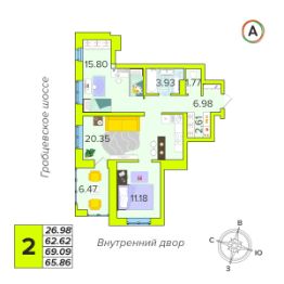 Общая площадь65,86 м²